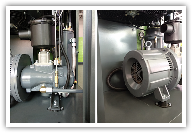 JUCAI螺桿空壓機主機,大轉子低轉速設計,采用先進的螺旋齒型技術,瑞典原裝進口SKF圓錐滾柱軸承,噪音低,能耗低。