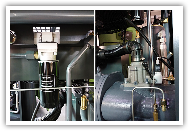 采用原裝的油氣分離器,精密的油氣分離芯能有效降低壓縮機中排氣含油量。耐高壓,耐高溫油桶,加上高質量烤漆,美觀實用。