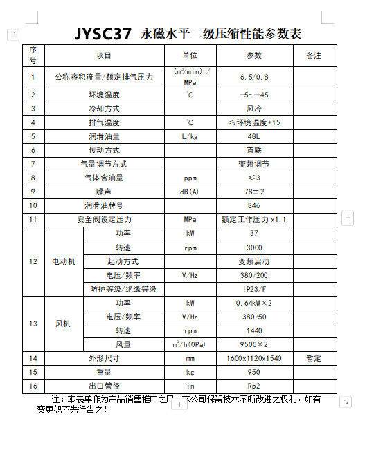 產品名稱:37kW 水平雙級直連永磁變頻空壓機 JYSC37
